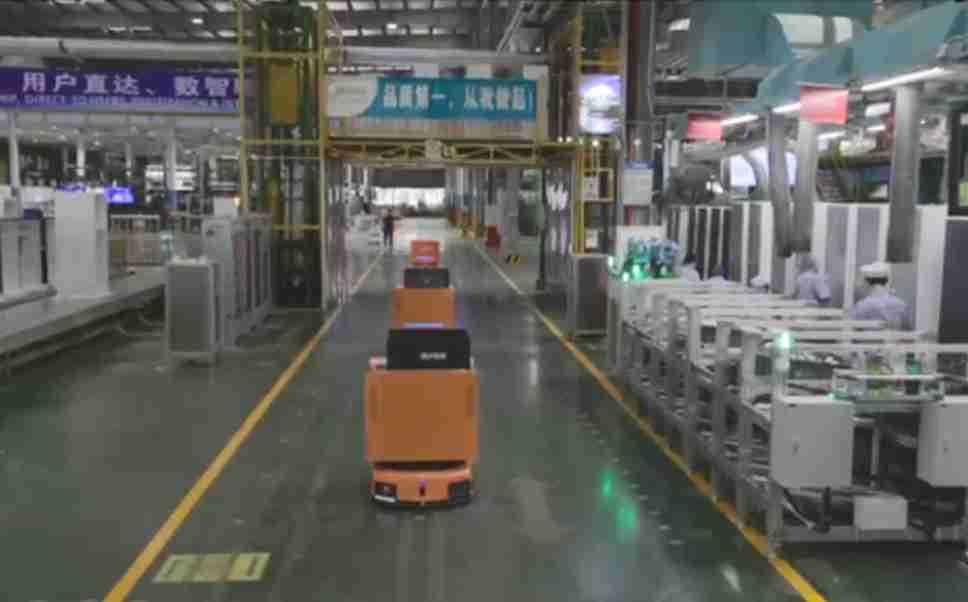 为车载冰箱物流配送打造的智能解决方案,,,,包含产中物流通过潜伏举升AMR搬运至线边,,,产后成品物流智能仓储,,流程包含产中物流智能齐套入库,,,,线边安灯叫料AMR智能配送至线边,,,,成品入库、、、、出库,,通过无人堆高车机器人,,,,智能仓储管理替代人工作业管理,,,实现更高存储、、更高效率、、、、更具柔性化的解决方案。。。